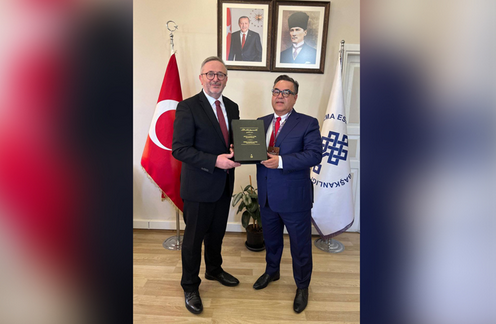 Zum Abschluss des Treffens überreichte Yılmaz dem ZIZ eine Faksimile-Kopie des Werks „Diwan Lughat al-Turk“ von Mahmud al-Kaschgari, dessen einziges Original aus dem 11. Jahrhundert in der Nationalbibliothek der Türkei aufbewahrt wird.