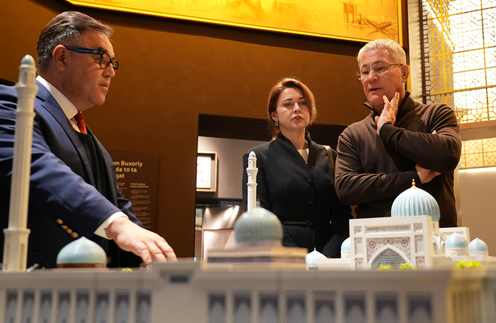 Für die Delegation wurde eine Führung durch das Zentrum organisiert. Die Gäste besichtigten seltene archäologische Funde, digitalisierte Handschriften und mit Hilfe künstlicher Intelligenz erstellte Ausstellungen in den Museumskategorien „Vorislamische Periode“, „Erste Renaissance“, „Zweite Renaissance“, „Neues Usbekistan – Fundament einer Neuen Renaissance“ sowie im Saal des Heiligen Korans.